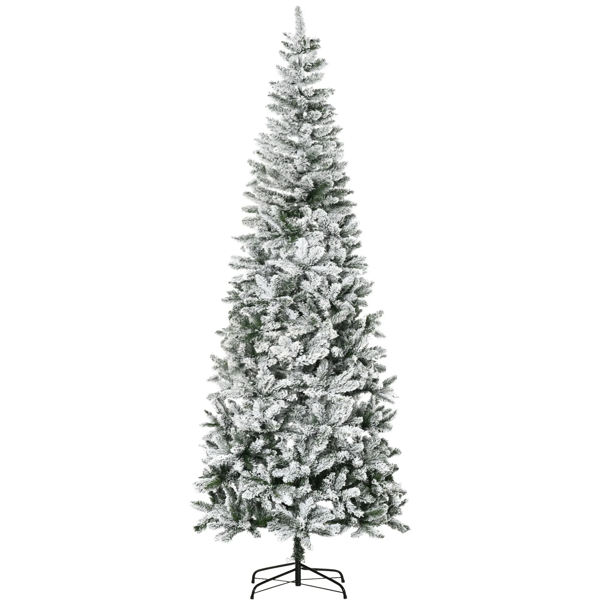 7.5' Unlit Snow-Flocked Pencil Christmas Tree with 600 Realistic Pine Tips, Pine Cones, Red Berries