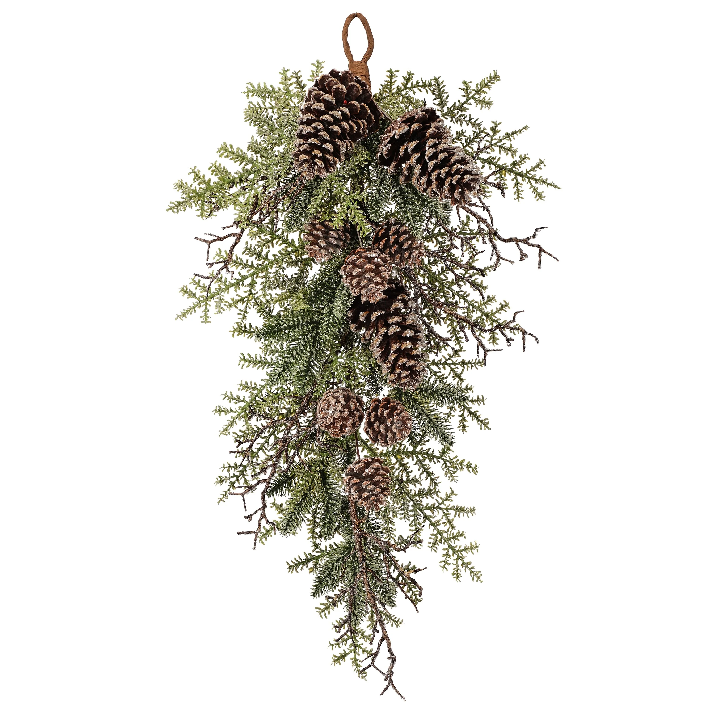 22" Snowy Flocked Angel Pine Pine Cones Christmas Teardrop Swag Unlit