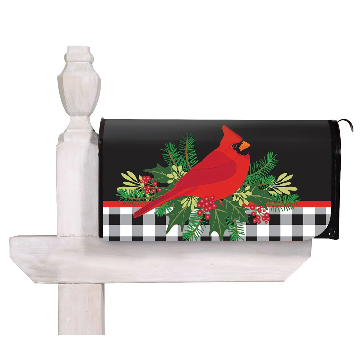 Holiday Cardinal Plaid Border Mailbox Cover - 9.250 x 5.000 x 0.750
