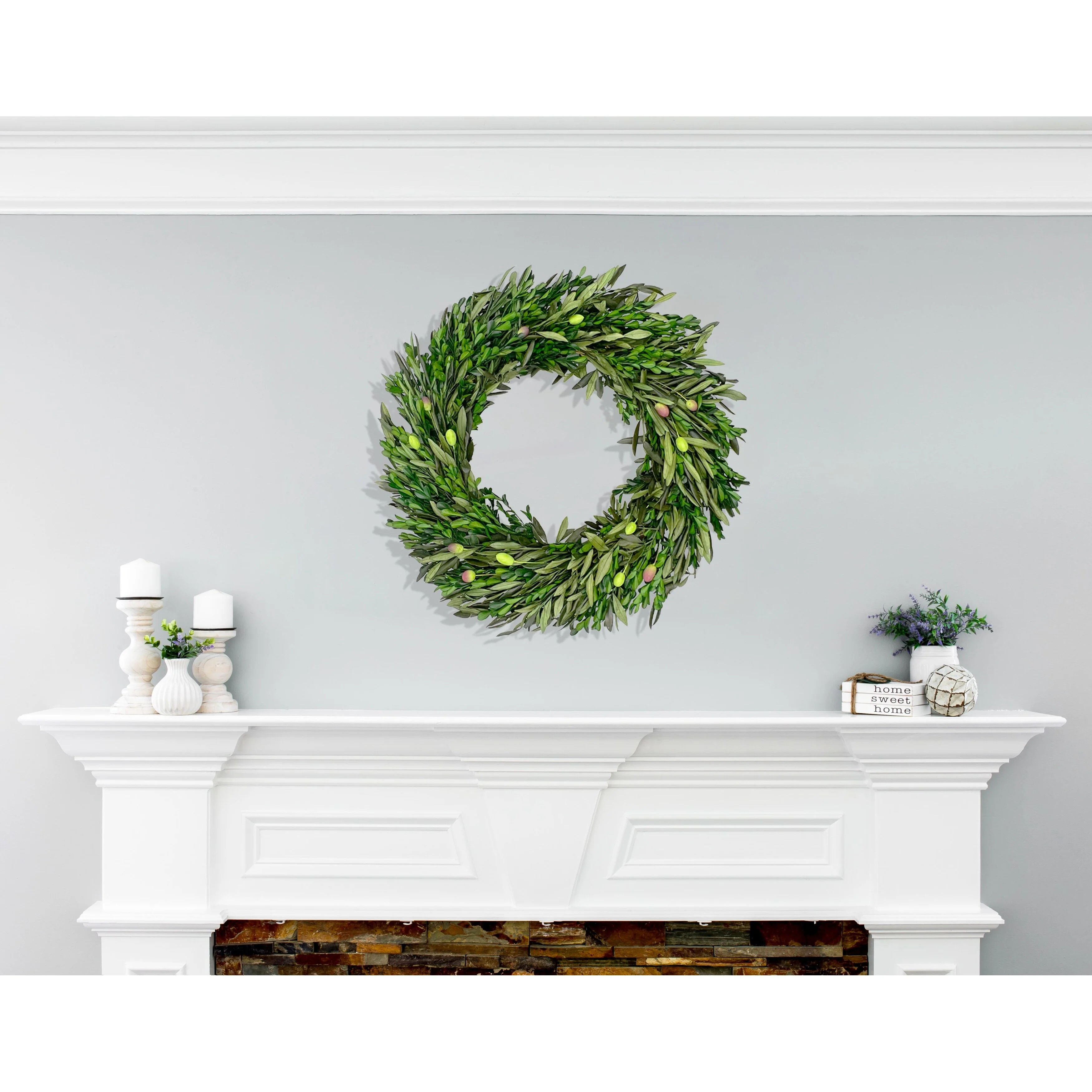 Preserved Decorative Dried Real Olive Boxwood Leaf Wreath 21 Inch - Green