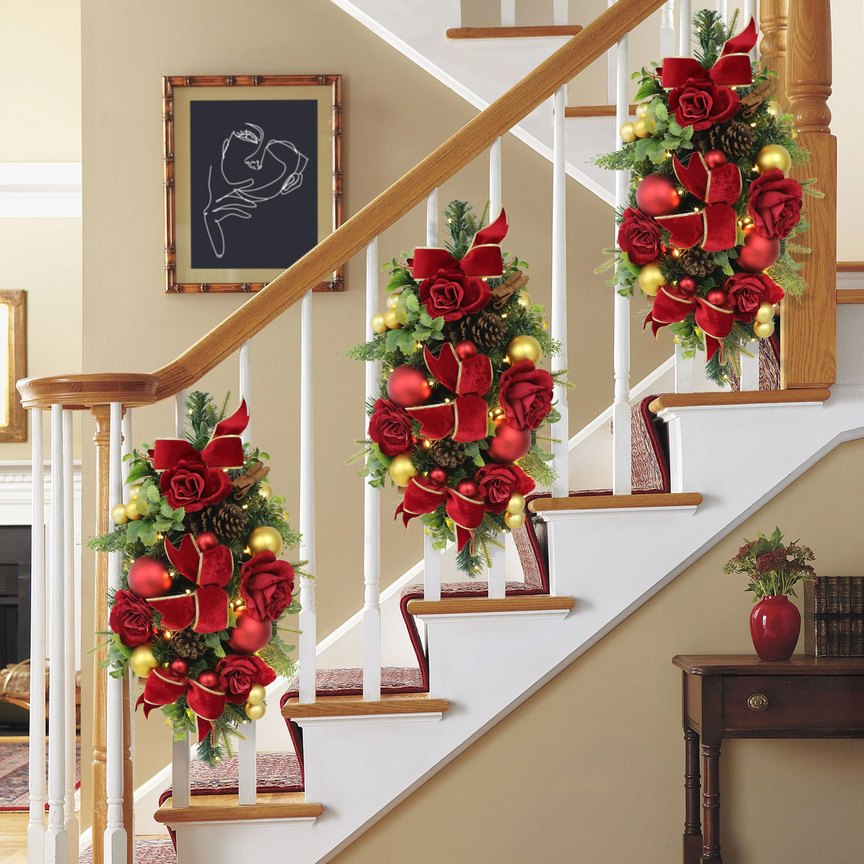 Puleo International 28" Pre-Lit Artificial Adorned Battery-Operated Banister Swag