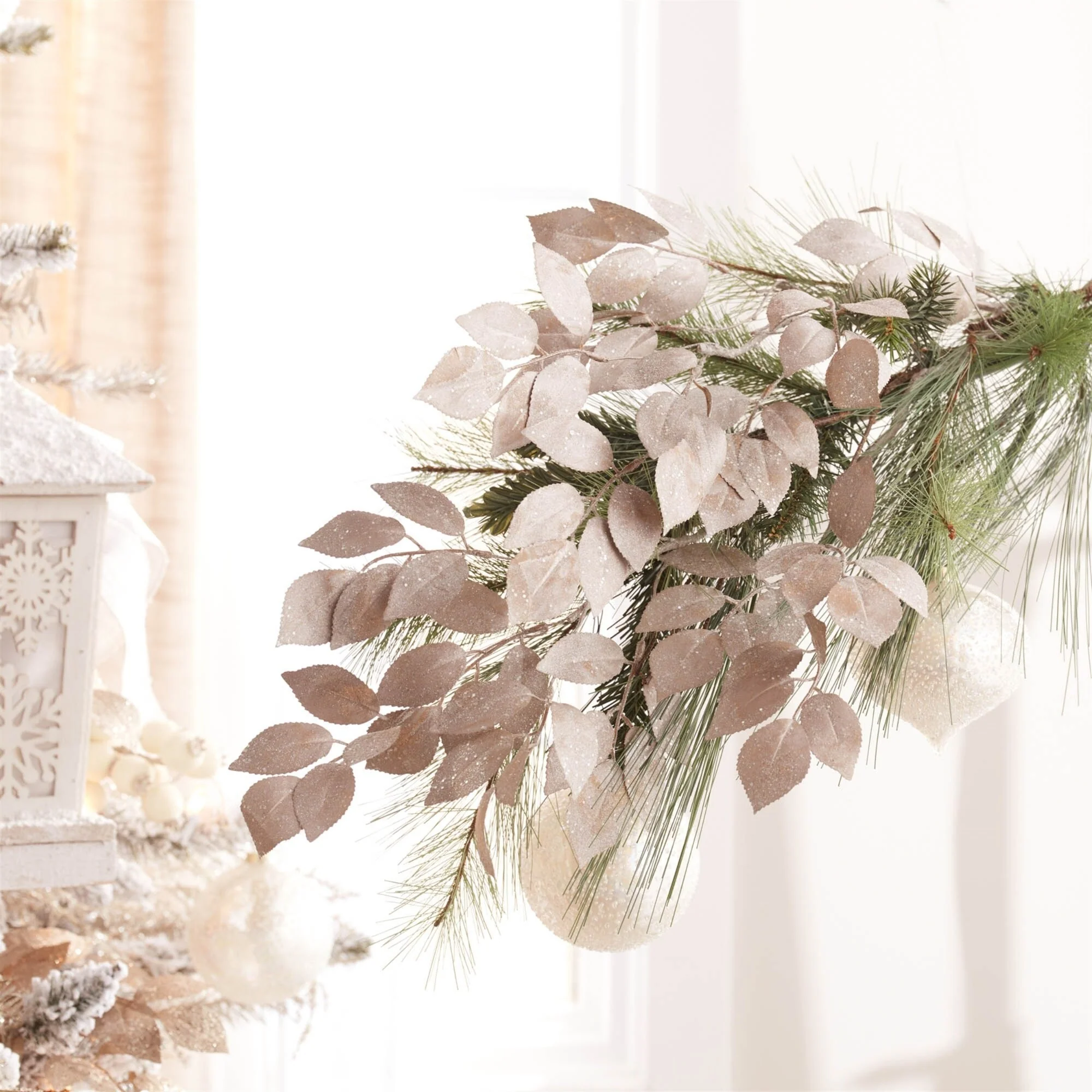 Glittered Leaves Artificial Christmas Spray - 35.5" - Pink - Set of 6