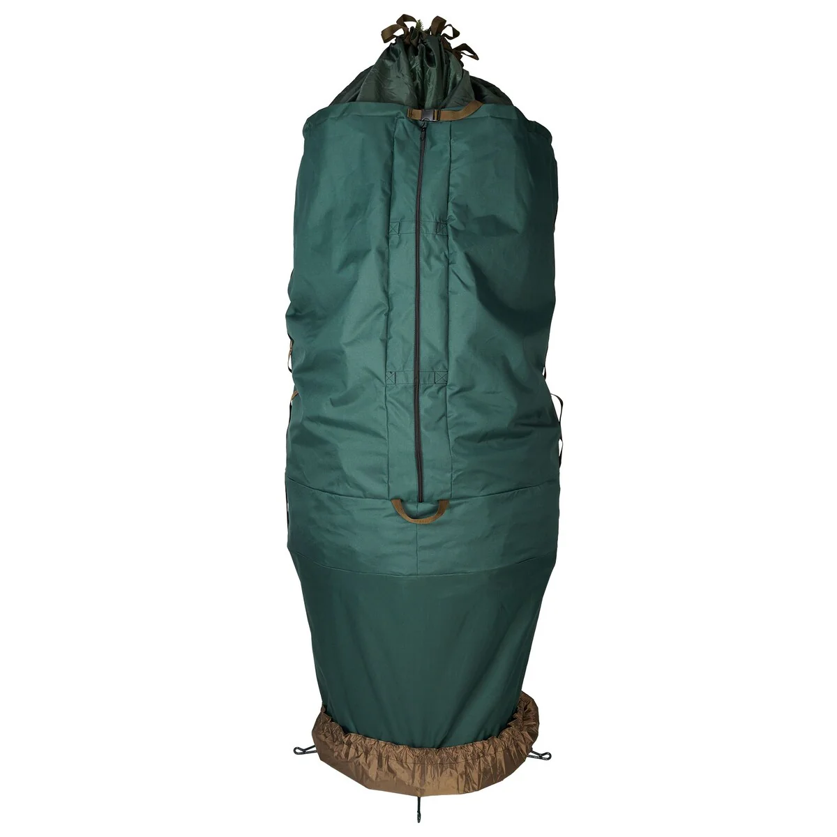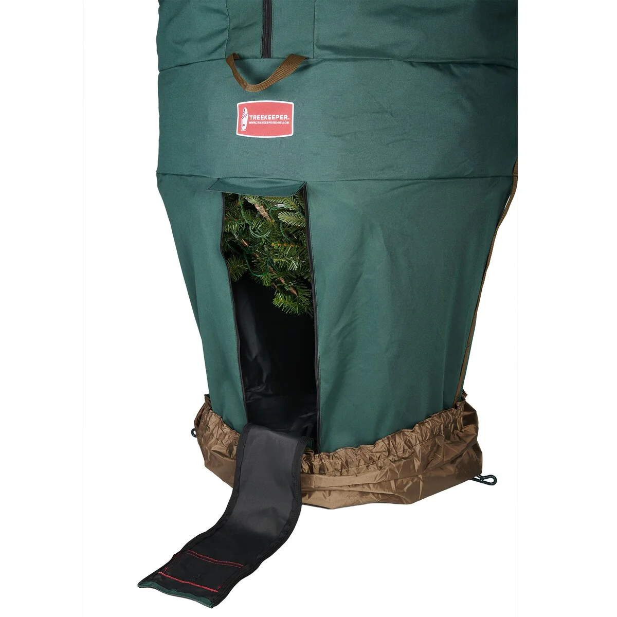 We understand your frustration with your artificial Christmas tree. Each year, set up and take down of your tree tests your patience as you assemble each section and try to find the plugs to make all the lights work. You force a large tree into a cardboard box that is too small to fit your Christmas tree, and break your back carrying the box in and out of storage. This repeated assembly and disassembly, along with that taped together cardboard box, shortens the lifespan of your Christmas tree. The good news is that it doesn't have to be this difficult or time consuming. The large girth upright Christmas tree storage bag is perfect for artificial Christmas trees that up to 9ft. tall, and are more full or wider than others. Vertical storage for Christmas trees allows you to keep your tree assembled, already cutting your setup and take down time in half. Pair that with the space-savings you'll have from storing your tree standing up, with the ability to use a rolling tree stand so you can wheel your Christmas tree container right into storage, and suddenly the task you once hated becomes a whole lot easier. Next year, when set up your tree, simply bunch the xmas tree storage bags up at the base of your tree, securing it in The attached tree skirt, and your Christmas tree bag bag will be discreetly hidden from sight as if it weren't even on the tree to begin with. A Patented Product: Patent(s) 7,694,494 and 7,775,360