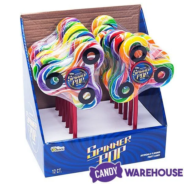 Display box contains 12 Fidget Spinner Rainbow Swirl Pops.