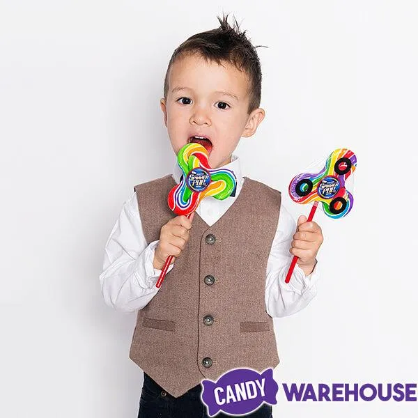 The candy actually spins! The latest fad in the toy industry, fidget spinners are available in many designs and styles, but none taste better than these delicious hard candy versions on a stick! Fidget spinner pops feature a colorful rainbow swirl design and a fabulous fruity flavor sure to inspire hours of tasty toy time.