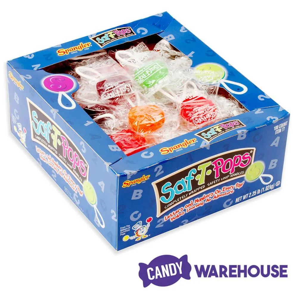 Display box contains 100 individually wrapped Saf-T-Pops Lollipops.