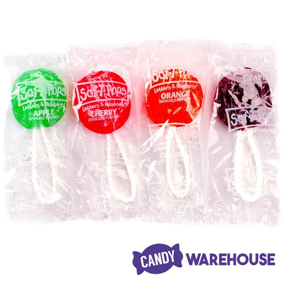 Colorful fruit flavored suckers with looping safety handles to prevent choking. Letters and Numbers on every pop - a tasty and educational treat!