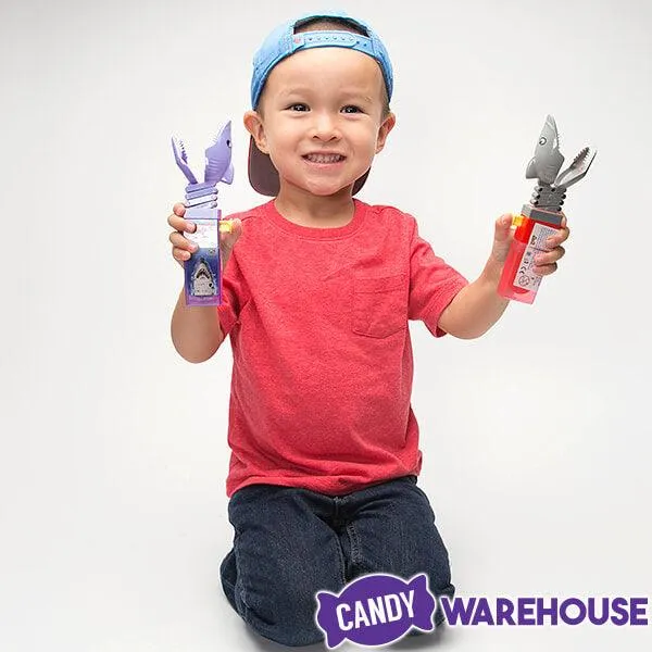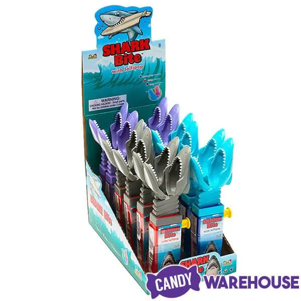 Released to the big screen in 1975, the feature film Jaws about a killer Great White Shark was a surprise sensation that still terrorizes the thoughts of beach-goers everywhere. The graphics featured on these unique accordion arm shark pops feature an image similar to the Jaws movie poster... the sea monster about to breach the still waters below an unsuspecting swimmer and a shark munching a surf board. Bring the candy to life by pressing a button on the pop and watch as the shark head extends and the mouth clamps down upon its prey. A great party favor for beach parties or other summer events, Shark Bite suckers are sure to enliven the festivities.