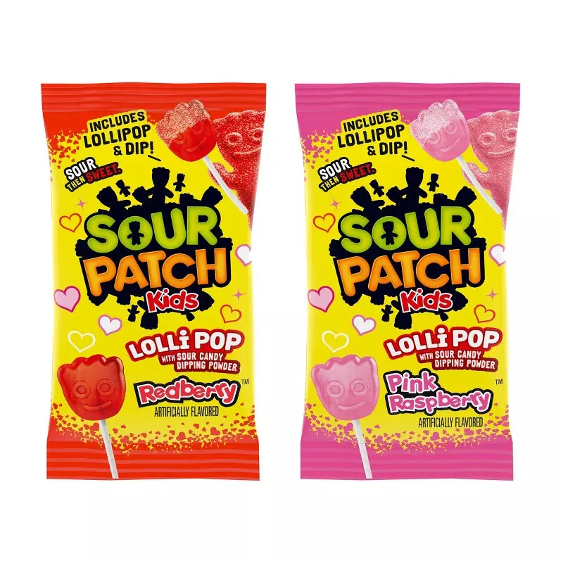 Make Valentine’s Day extra tangy with SOUR PATCH KIDS Lollipops with Sour Candy Dipping Powder! Each individually wrapped lollipop is shaped like a SOUR PATCH KIDS head and comes in bold Pink Raspberry and Redberry flavors. Dip them into the mouth-puckering sour candy powder for a fun, SOUR THEN SWEET experience that’s perfect for candy exchanges, parties, and holiday celebrations. These swoon-worthy treats are great for sharing with friends, family, or even a secret crush. Keep a stash handy for last-minute gifts or to fill candy dishes with an irresistible sour twist this Valentine’s Day!