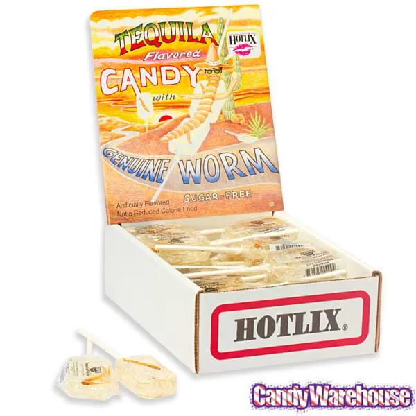 Display box includes 36 Sugar Free Tequila Worm Lollipops.
