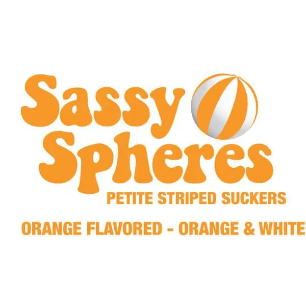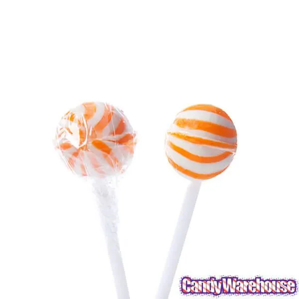 Bag contains 400 individually wrapped Orange Sassy Suckers Petite Striped Ball Lollipops.