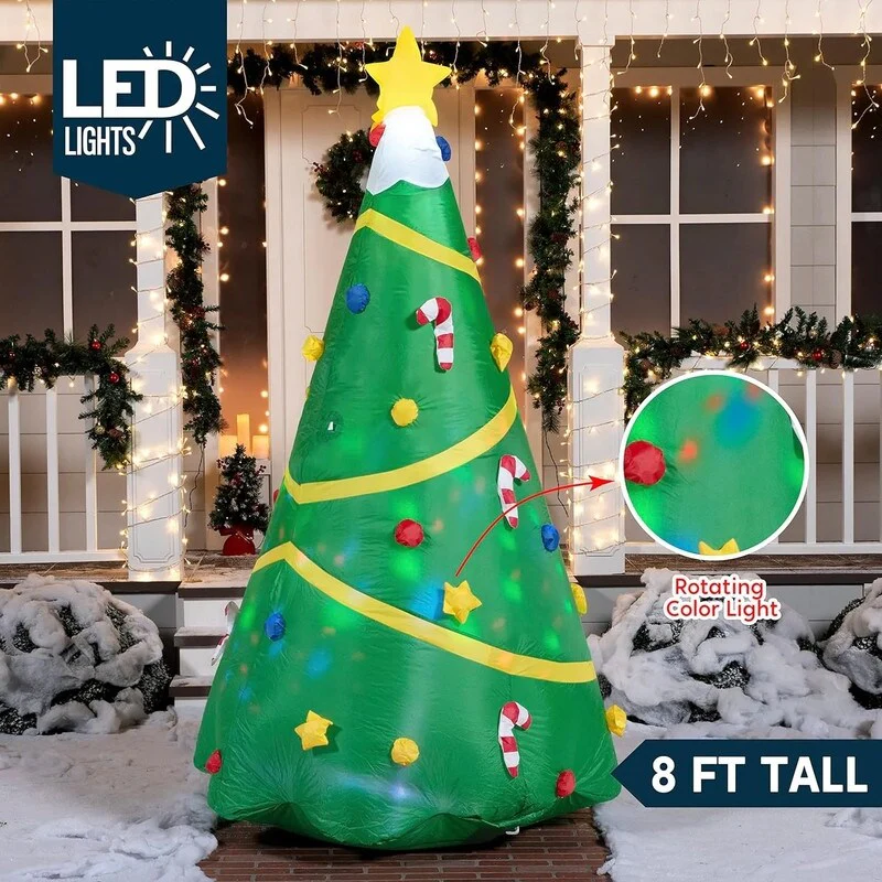 - INFLATABLE CHRISTMAS DÉCOR: Decorate your outdoor setting with this charming 8 ft. inflatable Giant Christmas Tree. It will shine brightly to illuminate your yard at night for the community to enjoy. A perfect addition for your Christmas lawn
