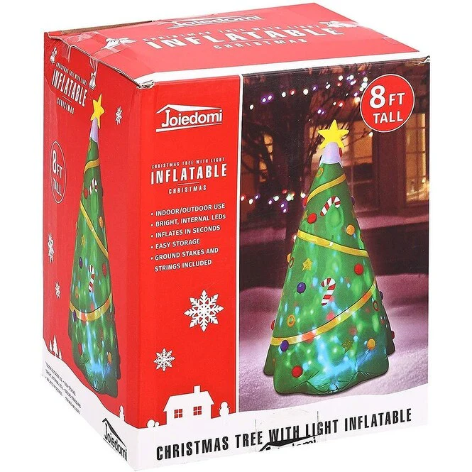 Joiedomi's 8 ft. Inflatable Christmas Tree with Light includes LED swirling lights that is perfect to give a holiday vibe in your outdoor setting. It's easy to use and pops up in a minute. It's the perfect addition for your holiday-filled lawn and for the community to enjoy!