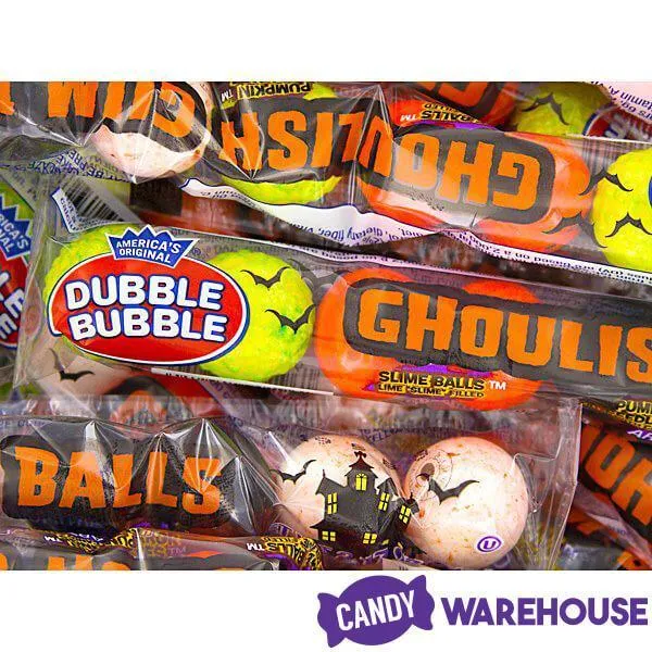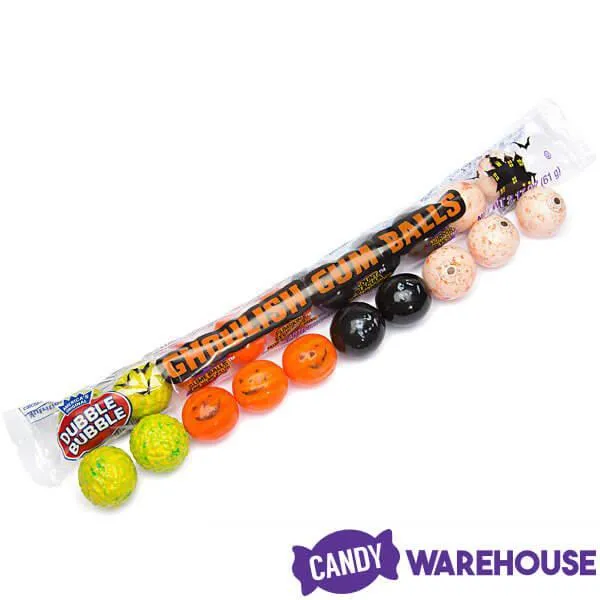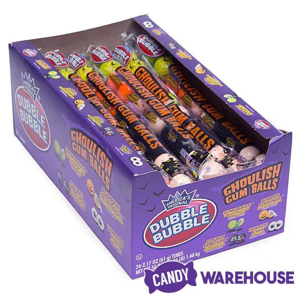 Display box contains 24 Dubble Bubble Halloween Ghoulish Gumballs Tubes, each with 10 gumballs.