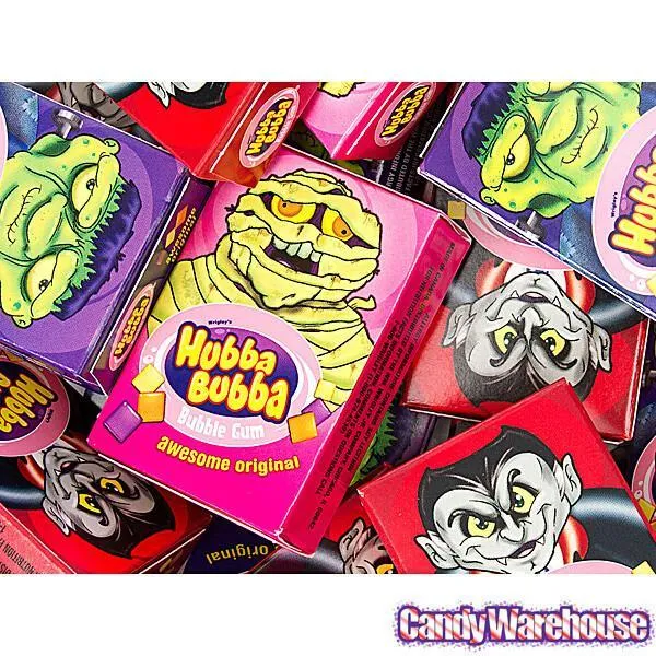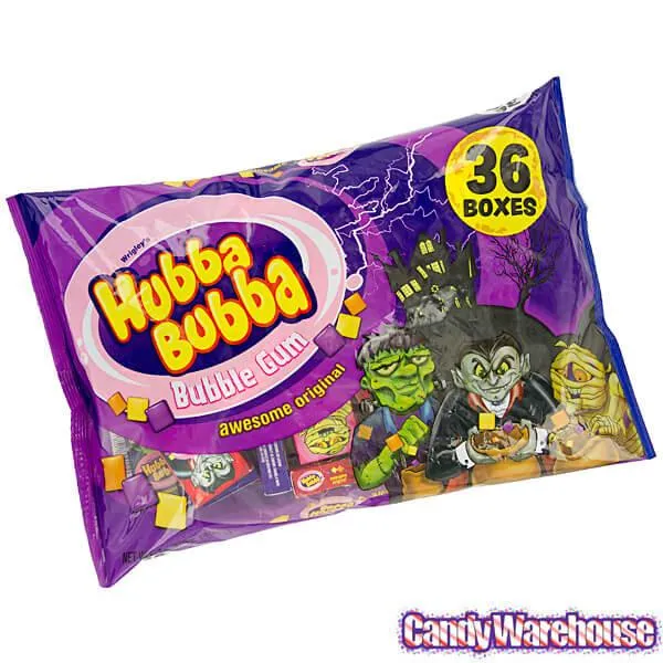 Display box contains 36 packs of Halloween Hubba Bubba Bubble Gum Rolls.