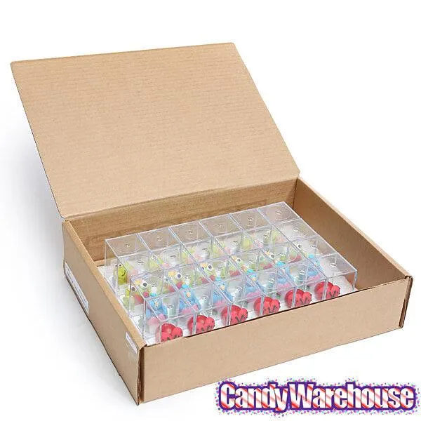 Box contains 24 packs of Valentine Bubblegum Buddies Candy.
