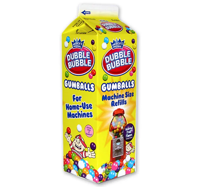 Dubble Bubble Assorted Colors 1/2-Inch Gumballs Refill Milk Carton: 24-Piece Case