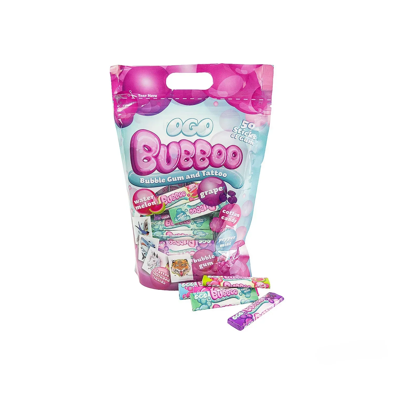 Bubboo Fruit Bubblegum with Tattoos: 50-Piece Bag
