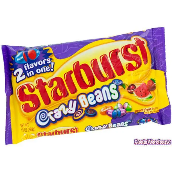 Bag contains 13 ounces of dual-flavored Starburst Crazy Beans Candy.
