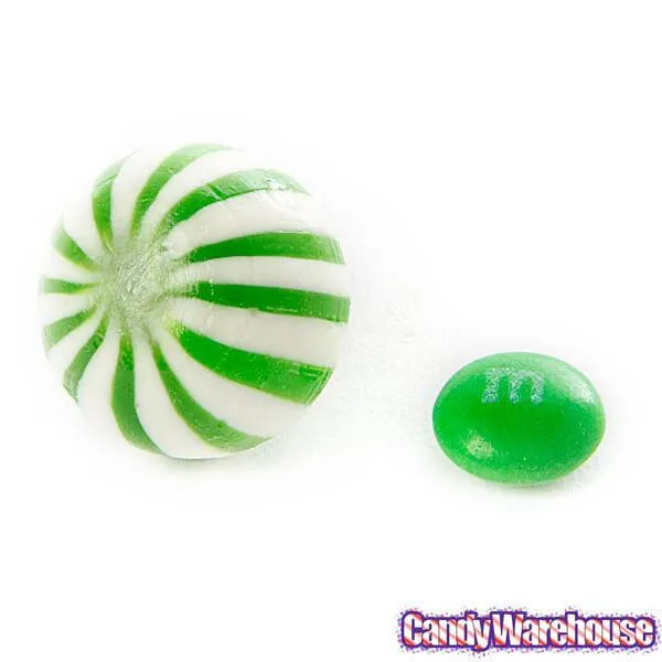 Expertly curving outward from swirly points on either side, lines that wrap across each individually wrapped green Sassy Sphere make these delightful sweets look like striped balloons inflated to full capacity like the ones you see at the circus and county fair. Plucky and adorable, these vibrant green and white confections taste just as good as they look. Bulbous and bright, each ball is full of fruity lime flavor that promises to perk up your taste buds and refresh your palate. Fill up a candy bowl with these jolly spheres for weddings, holidays, or any occasion, and prepare to impress your guests!
