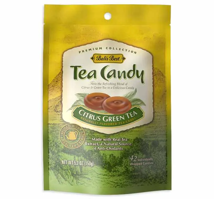 Bali's Best Citrus Green Tea Hard Candy Peg Bags: 12-Piece Case