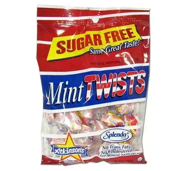 Atkinson Sugar Free Hard Candy Twists - Peppermint Peg Bags: 12-Piece Case