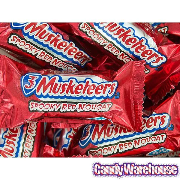 A spooky spin on the classic 3 Musketeers candy bar... the fluffy center of these snack size bars feature a blood red center.