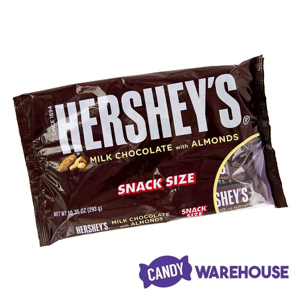 Bag contains 10 ounces of Hershey's Milk Chocolate with Almonds Snack Size Candy Bars... that's about 24 pieces.