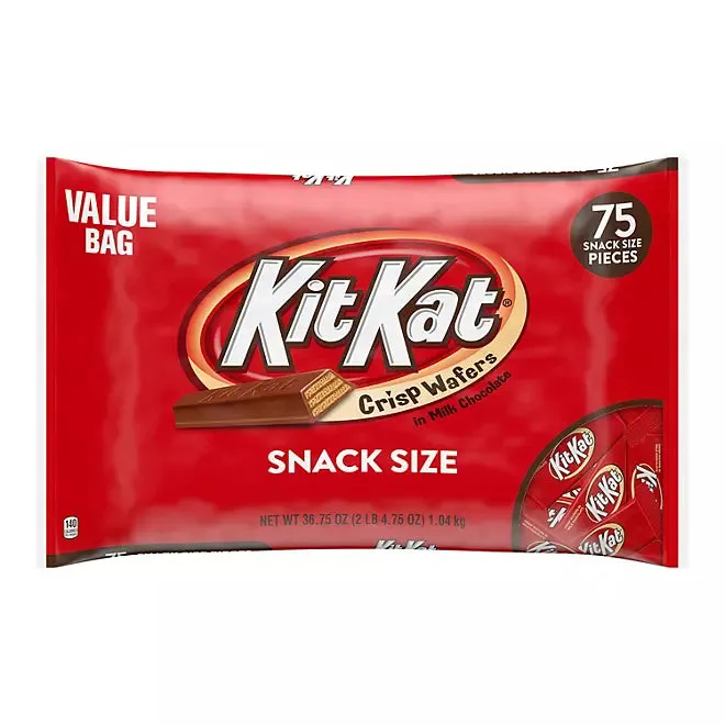 Bag contains roughly 75 Kit Kat Snack Size Candy Bars.