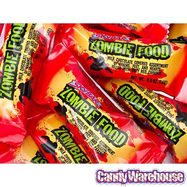 Bag contains 22 Skybars Zombie Food Halloween Candy Bars, each with a net weight of 0.5 ounce.
