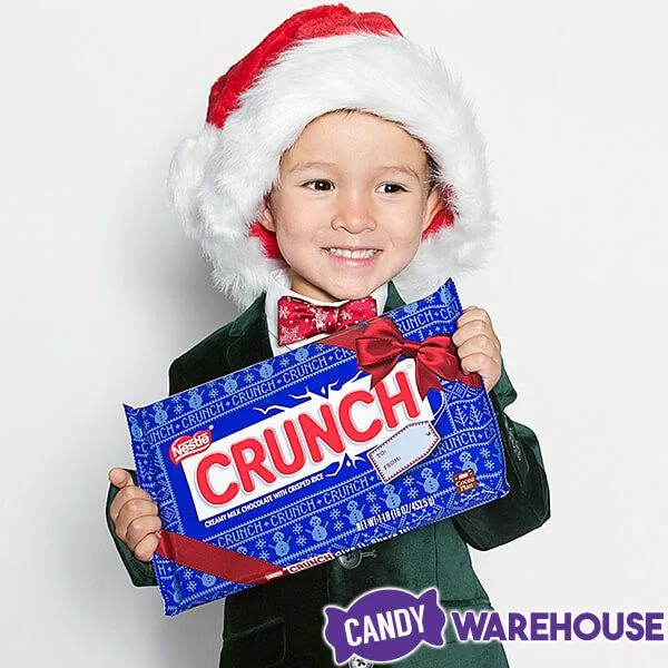 Jingle-Crunch! Jingle-Crunch! Jingle all the Crunch! It’s that time of year again! And, as always, it’s important to keep things in perspective, like how huge this Crunch bar is compared to the regular full-size. A regular bar weighs about 2 ounces, and this one weighs 16! It’s a full pound of crunchiness! That’s like eight crispy, chocolaty bars combined in one giant brick of blissful indulgence. It's already dressed in its own festive packaging with a dancing Snoopy for a pre-wrapped yuletide present, and it goes just as well as an eye-widening stocking stuffer (if you can get it to fit).