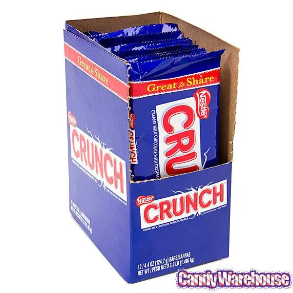Display box contains 12 Nestle Crunch Giant Size Candy Bars, each with a net weight of 4.4 ounces.