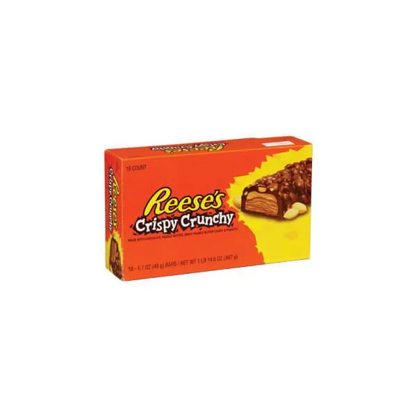 Display box contains 18 Reese's Crispy Crunchy Candy Bars, each with a net weight of 1.7 ounces.