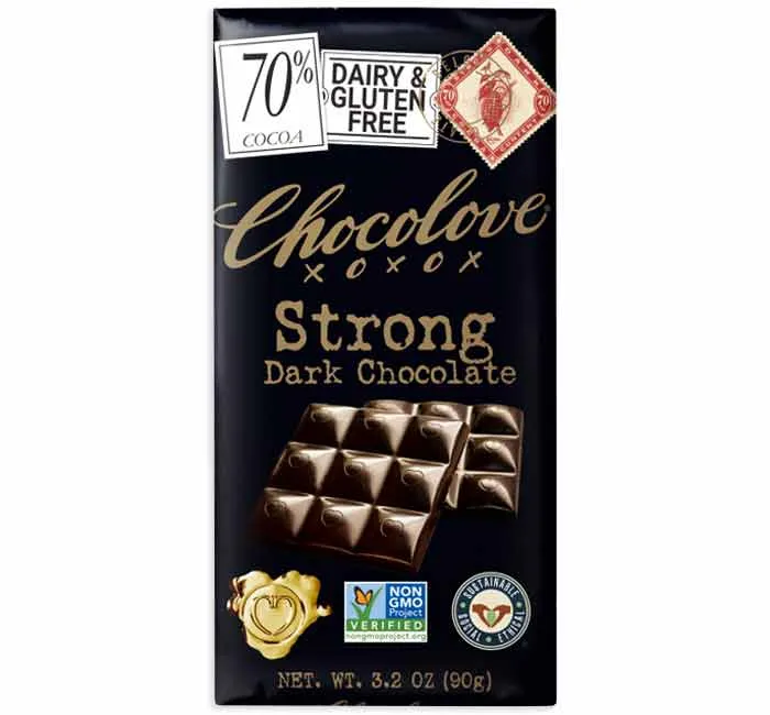 Chocolove Strong Dark Chocolate Candy Bars: 12-Piece Box