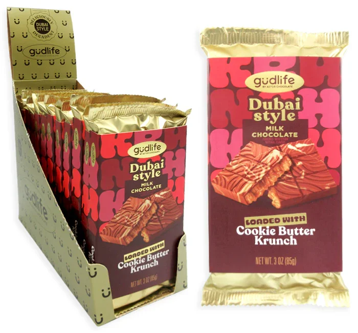 Gudlife Dubai Style Milk Chocolate Cookie Butter Krunch Bar: 24-Piece Display
