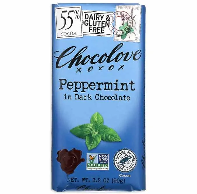 Chocolove Peppermint Dark Chocolate Candy Bars: 12-Piece Box