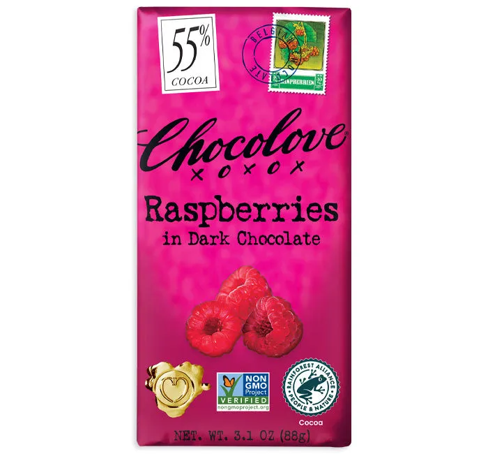 Chocolove Dark Chocolate Raspberry Candy Bars: 12-Piece Box
