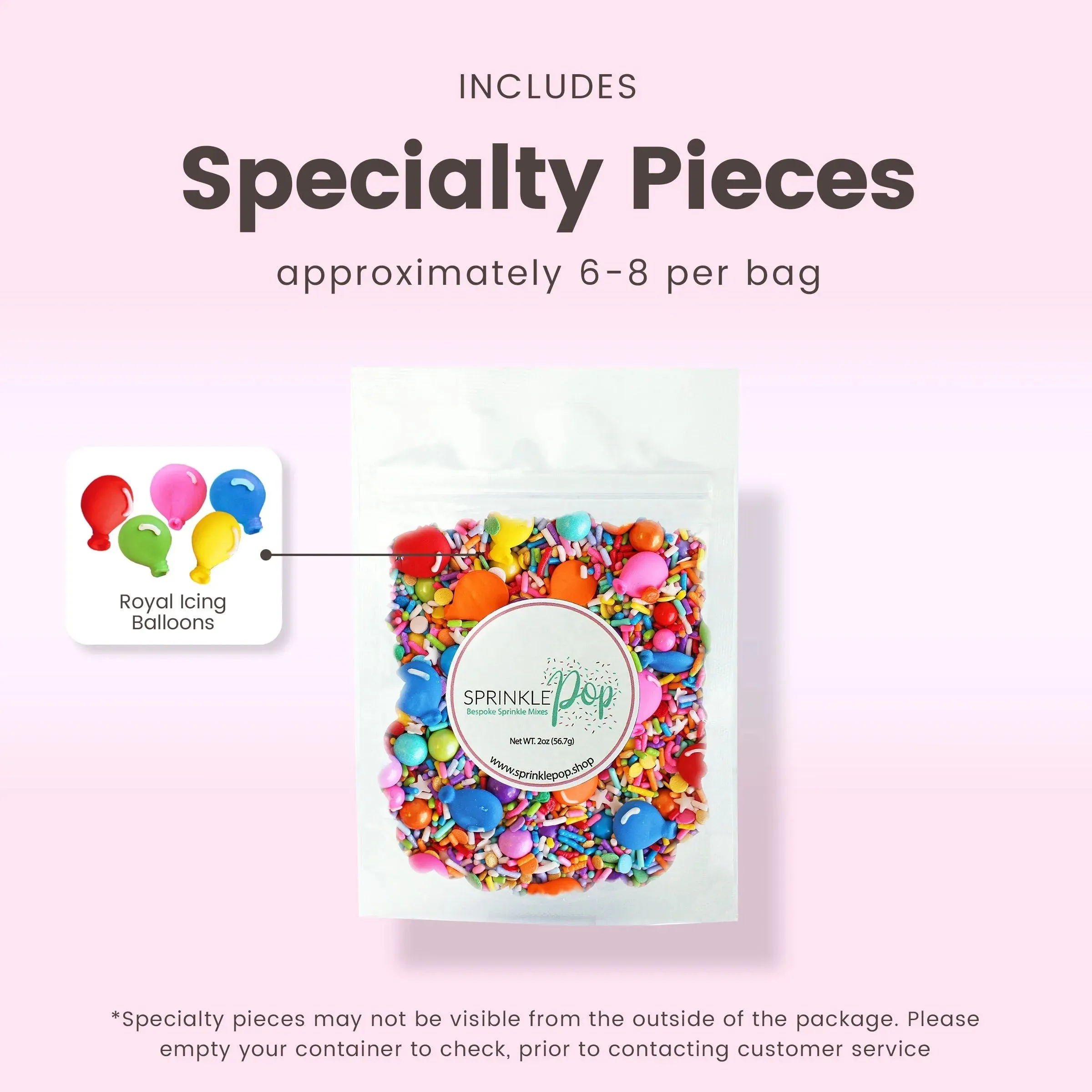 Introducing the "Birthday Party" Sprinkle Mix! Perfect for adding a festive touch to any dessert, this delicious sprinkle mix features a colorful blend of rainbow sprinkles and hand-piped royal icing balloons. Whether you're baking for a birthday party, a special event, or just because, this sprinkle mix is sure to add a pop of fun and flavor to your treats. With a shelf life of 18 months and stored in a cool, dry place away from light, it's easy to keep on hand for all your decorating needs. So add some excitement to your next dessert with "Birthday Party" Sprinkle Mix.