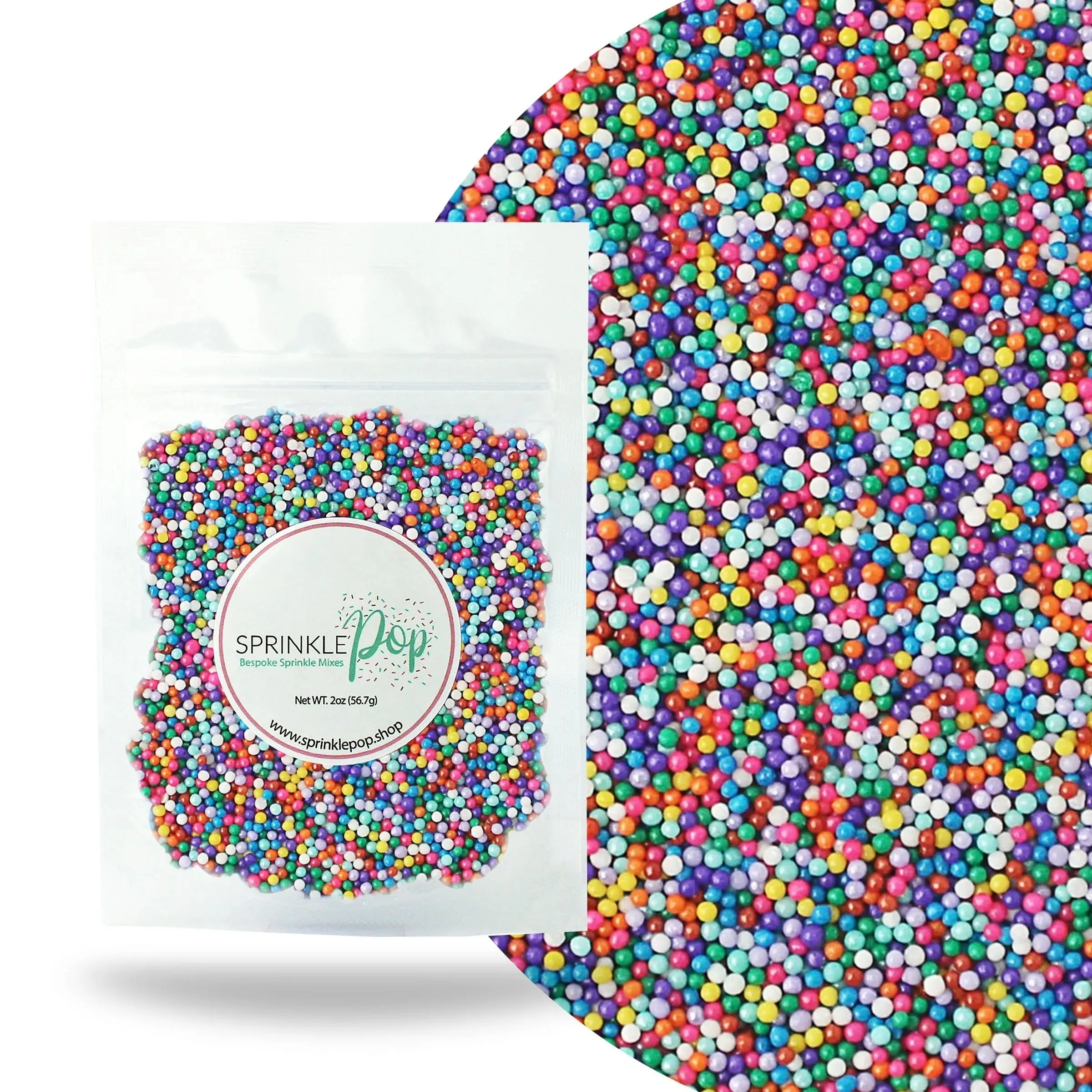 Our Cool Rainbow Nonpareil Sprinkle Mix features the usual rainbow suspects plus additional hues of blue, purple, and pink!