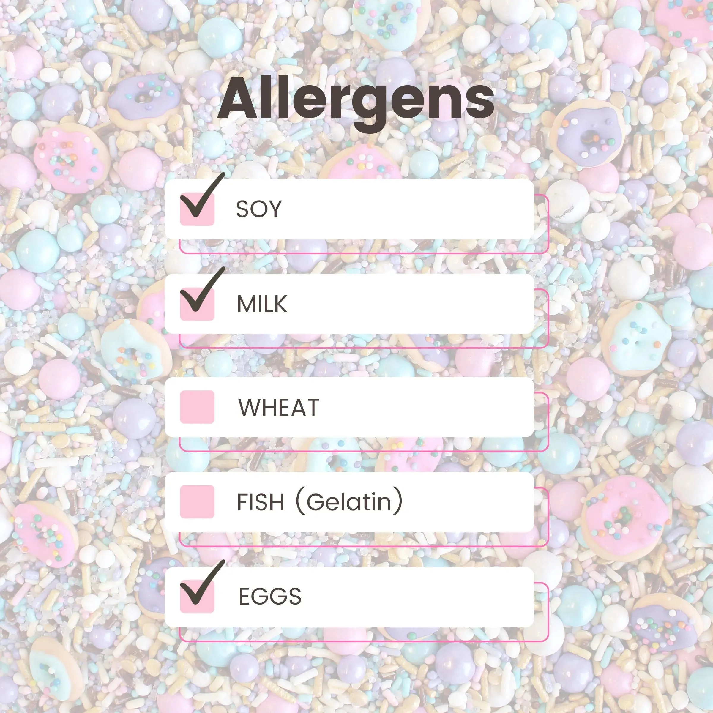 ALLERGENS: Contains SOY, MILK, and EGGS