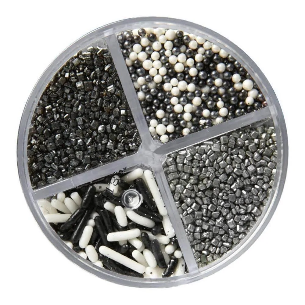 Wilton Black, White and Silver 4-Cell Sprinkle Mix: 3.8-Ounce Bottle