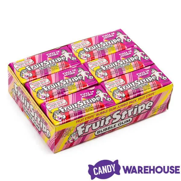 Display box contains 12 packs of Fruit Stripe Bubble Gum.