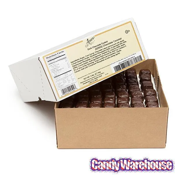 Box contains 6 pounds of Dark Chocolate Covered Chocolate Caramels Candy... that's about 180 pieces.