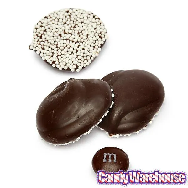 Box contains 8 pounds of Deluxe Dark Chocolate Nonpareils Candy Discs.