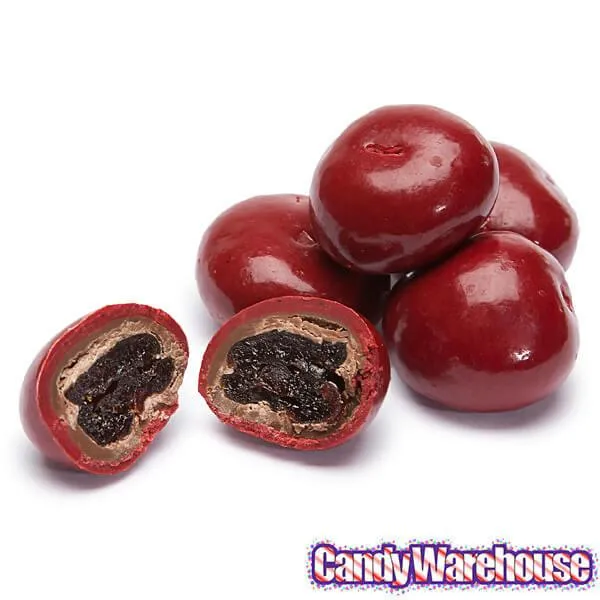 Moist Bing cherries are drenched in premium milk chocolate and then double dipped in a decadent cherry fruit pastel coating blended with more bits of real cherry. The appearance is enhanced with a high gloss finish of a deep burgundy color including "flecks" of natural fruit bits. These delicious morsels are sure to the star of any dessert table or candy dish.