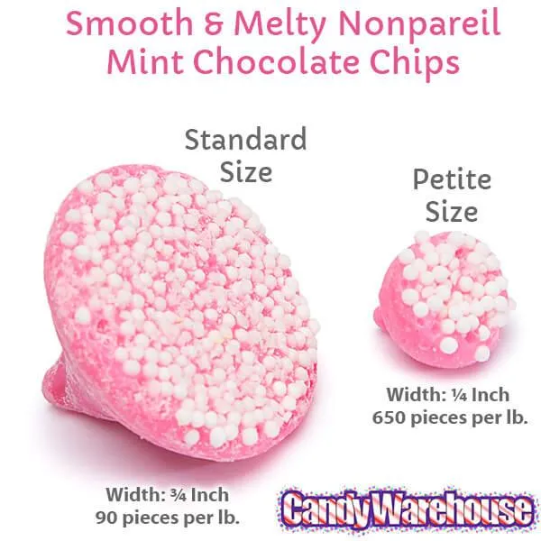 Bag contains 5 pounds of Petite Smooth & Melty Nonpareils Mint Chocolate Chips.