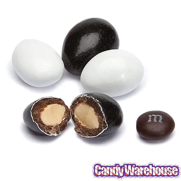 These delicious white and black candies present a distinguished look that's perfect at formal occasions and events. Plump, crunchy almonds surrounded by a thick layer of deluxe dark chocolate and finished with a thin candy shell.