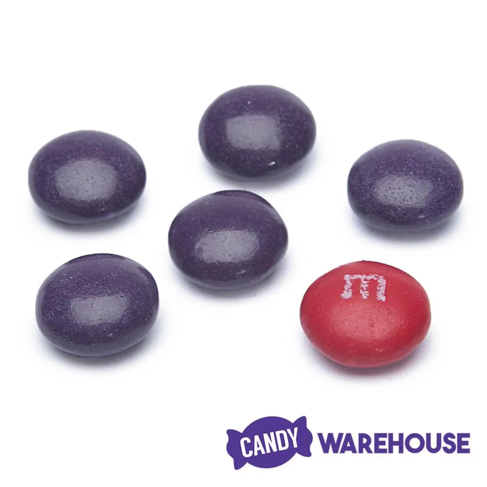 Gourmet milk chocolate ellipsoids coated with a thin candy shell of bright purple! Each piece is about the size of a plain M&M's candy. The inset photo illustrates the comparative size and color of the two candies.