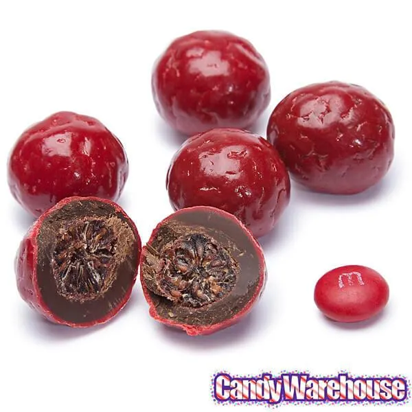 Fresh raspberries picked at their peak are gently dried and covered in premium dark chocolate and then coated with an outer layer of red raspberry flavored white chocolate which is finished to resemble the real fruit!