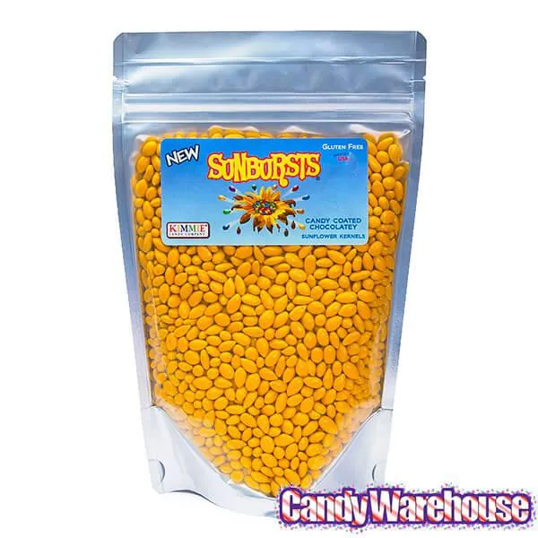 Bag contains 1 pound of Yellow Sunbursts Chocolate Covered Sunflower Seeds Candy.